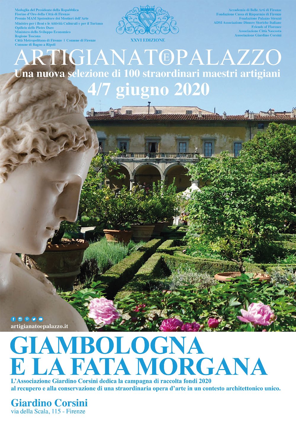 Il filo che lega due eventi di natura diversa, che però finiscono per convergere in uno stesso luogo -la XXVI edizione di ARTIGIANATO E PALAZZO e il progetto di mecenatismo, “GIAMBOLOGNA E LA FATA MORGANA”-, sono gli ideatori e promotori di ambedue, la principessa Giorgiana Corsini, che mette inoltre a disposizione i giardini della sua dimora per il loro svolgimento, e Neri Torrigiani titolare dello studio di Progettazione e Comunicazione di Firenze che porta il suo nome.