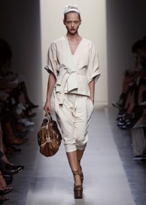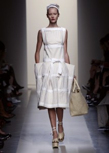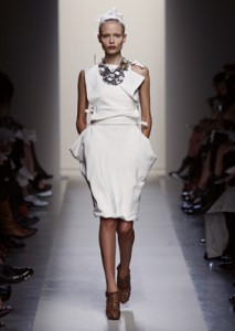 L’eccessivamente corto è stata una costante di tutte le collezioni; alcuni outfit, che sono stati bersaglio della Menkes, ci spingono a concordare con lei. Pensiamo, ad esempio, alla bellissima collezione Bottega Veneta, dove abbiamo visto una tutina corta bianca con cintura nera, composta da coulotte (altro esempio simile abbiamo visto nella collezione Sportmax) tirata sui fianchi, a scoprire ancora di più la gamba. O il bustier bianco per accompagnare i pantaloni con fascia lucida sul davanti, e ciò è risultato volgare rispetto all’insieme della collezione. Ma la biancheria a vista non è stato un errore solo di Bottega Veneta. Antonio Marras ha fatto sfilare le sue modelle in abiti trasparenti con a vista sia la guaina color carne sia il reggiseno. Nella maggior parte dei comunicati stampa si enfatizzava l’utilizzo dell’intimo a vista; che per altro non è per nulla una novità stilistica. Altroché veline”¦