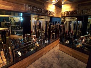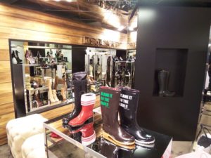 Lo spazio riprende i dettagli architettonici e il design caldo e accogliente degli interni delle boutique monomarca Dsquared² con qualche elemento differente, come il supporto per l’esposizione delle scarpe incastonato in una parete fatta di assi di legno di larice, che può considerarsi uno dei materiali distintivi degli interni di tutte le boutique Dsquared² del mondo.