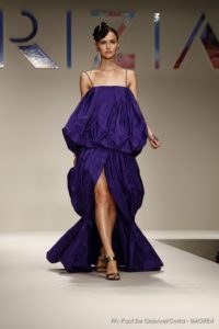 Poi il pantalone si allunga a diventare pinocchietto ed è coniugato con sottogiacca a stampa pantera in nero o in caramello. Anche gli abiti diventano lunghi e capovolgono le leggi della gravità, il plissè va verso l’alto negli abiti da sera corto e lungo ed è una alchimia fisica mantenerlo in piedi.