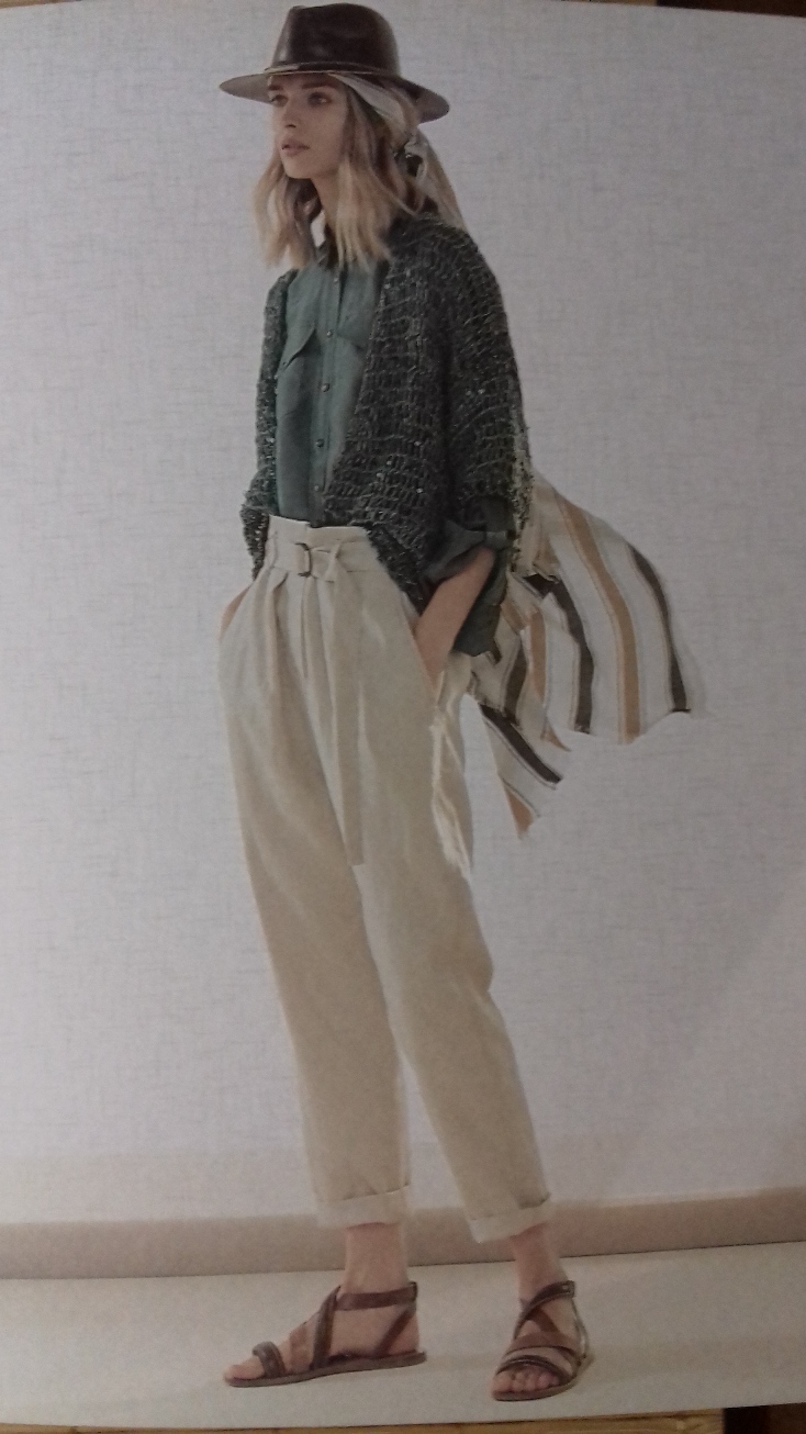 Linee disinvolte e pulite, tagli over, maniche a raglan e giacche doppio petto, pantaloni dalle linee fit o over, gonne lunghe e morbidi tricot, rappresentano la sintesi di una collezione giocata tutta su colori sobri e naturali, su toni sabbiati, su teneri bianchi, sugli écru, su tonalità cotte dal sole e nuance purissime, su sfumature color tabacco e caffè, su tinte speziate legate ai neutri e rigeneranti verdi e blu. Combinazioni di colore dalla tempra armonica e rilassante cariche di carismatico benessere, confortevoli ed avvolgenti.