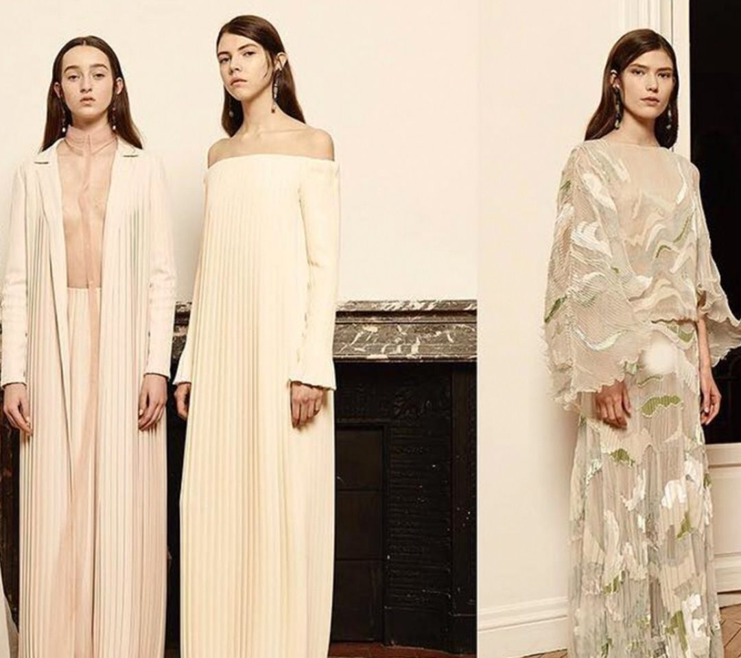 Il designer Pierpaolo Piccioli, direttore creativo della Maison, per l’estate riscopre la duttilità del plissè in modo esigente. Pur non essendo vistosa e sfacciata, la sua visione non teme di osare con la moda, ma lo fa in maniera equilibrata, senza ostentazioni. E lo fa rivisitando la più iconica creazione dell’eclettico Mariano Fortuny, la semplicissima tunica in seta plissettata Delphos che agli inzi del XX secolo rese immortali gli abiti delle dee dell’Olimpo. Un’infinità di minuscole piegoline su pepli dagli strati sovrapposti che hanno la capacità di trasformarci in affascinanti cariatidi.