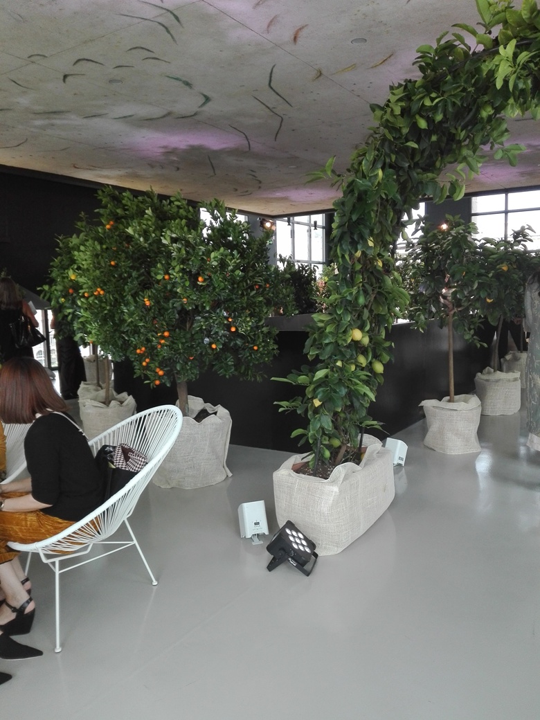Il mediterraneo accoglie gli ospiti di Gentryportofino, nel Museo del Novecento trasformato in una limonaia intensamente profumata -gli alberi sono cariche di frutti-. Tutto richiama le coste della Liguria lì dove Portofino, il piccolo borgo di pescatori famoso nel mondo, si affaccia su una baia con le sue case, i suoi negozi esclusivi, i ristoranti dove gustare specialità di pesce, il Castello in alto, la piazzetta da cui ammirare le case colorate che si riflettono nel mare. In Liguria affonda le sue radici il marchio produttore -agli albori- di cachemire; poi si sposta nel mantovano quando il brand è rilevato dalla Olmar and Mirta di Giambattista Tirelli alla fine 2011. Dopo diversi anni di consolidamento, si presenta a Milano per la stagione A/I 2019-20 (cfr. Autunno chiama , si presenta ora per la sua seconda prova, P/E 2020 a MFW.