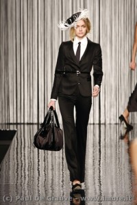 Una collezione che lascia una impressione bon ton, dove troviamo i classici dell’eleganza passata: il cappottino, il tubino nero o dei colori di moda, la gonna corolla, il pantalone, la vita segnata da piccole cinture, il classico tailleur pantalone e la modernissima giacca smoking.