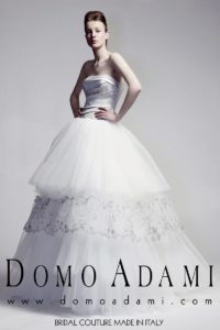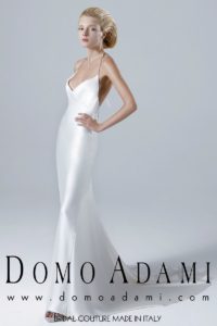 Alla luce di tutto ciò, per le spose più chic e raffinate c’è chi (vedi Domo Adami) ha pensato ad abiti esclusivi con dettagli e tessuti in platino, coniugando così le valenze immateriali con i valori concreti. Ci è piaciuto l’abito con ampia gonna arricchita da una doppia sottogonna in balze di tulle, che appare vaporoso e raggiante di aure luminose, con bustino steccato realizzato con oltre due metri di tessuto di platino e costruito su una base di seta duchesse rinforzata da tela di canapa. Deliziosa ed originale, ma soprattutto destinata ad avere seguito e successo in futuro, ci è pure sembrata l’idea di abbinare ad un abito da sposa bianco classico delle spalline costituite da preziose catene in platino, tali da potersi poi slacciare e indossare come gioielli.