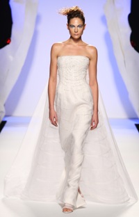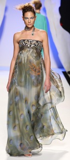 Guillermo Mariotto non finisce di stupire e in un parterre di felliniana memoria ha presentato la sua nuova collezione all’insegna della leggerezza e dell’ecologia. La novità è rappresentata dalla faccia di Barak Obama, dipinta a mano, su un abito ecologico. La collezione è un grande inno alla speranza e all’ottimismo: ecco allora per gli abiti di Gattinoni un trionfo di forme e di colori.