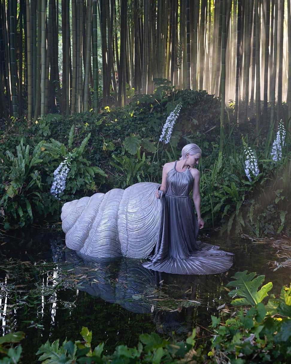 Camminando attraverso una foresta di bambù, una musa dai capelli rossi infila invece un diafano abito nero e si gira verso il suo Pan, che le concede il permesso di ordinare il modello. Un acquisto che poi celebra danzando in un rivo, con l’effetto della luce che filtra tra gli alberi a creare un’immagine molto sofisticata, grazie alla squisita fotografia di Nicolaj Bruel. Alla fine del film, si scopre che anche una sinuosa sirena si è presa un abito color pietra, con il quale nuota in un fiume muschioso sui Colli Albani; mentre le ninfe che pettinano le gigantesche trecce delle loro acconciature indossano ormai tutte abiti di raso del colore dell’oro brunito.
