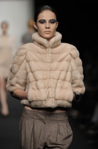 Per Regeneration, escono i capi firmati Chicca Lualdi, Gilda Giambra e Federico Sangalli. Pacatezza e semplicità per la prima collezione, che sfila con toni freddi, ma delicati, morbidi e luminosi (bianco, azzurro pallidissimo) che poi si mescolano con toni più caldi (cipria, beige, luna), ogni tanto scaldati da un tocco di lurex. Sono davvero capi che può portare chiunque, dalle linee facili ma al tempo stesso curate e affascinanti. Visone lavorato con inserti di organza; lana tweed lavorata a intarsio con il cashmere; volpi tinte come se fossero chiffon.