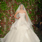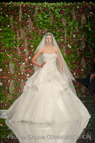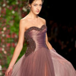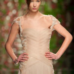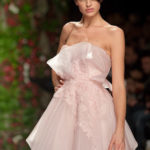 Linee sinuose accomunano gli abiti corti e gli abiti lunghi, i bustini si ricoprono di piccole pieghe, i corsages evidenziano in modo sensuale e netto la vita. L’abito da sposa, costruzione sartoriale onirica, è una creazione multistrato avvolta da onde e volute accennate. La collezione presentata il 29 gennaio a Roma, presso la Sala Baglivi del Complesso Monumentale di Santo Spirito in Sassia conferma le scelte stilistiche di Abed Mahfouz, l’interesse per lo studio e la sperimentazione di forme, linee e volumi; l’amore per il colore, declinato in differenti sfumature, in profili cromatici affascinanti.