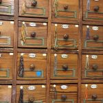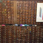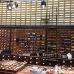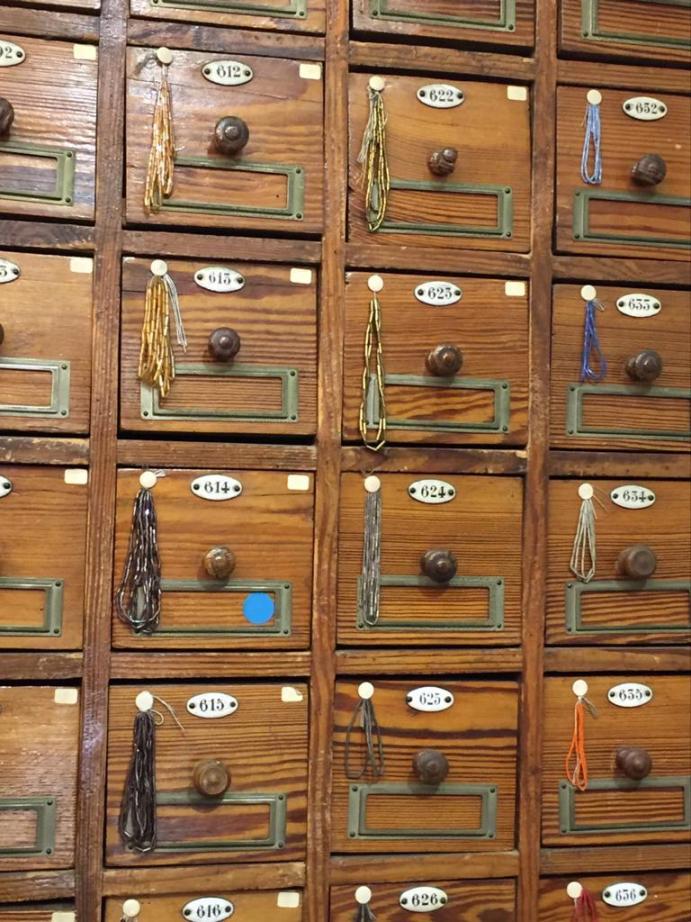 I cassetti, custodi di invisibili tesori e di indiscussa memoria, si animano aprendosi come le porticine di un orologio a cucù o come le caselle di un ipotetico calendario dell’Avvento. All’interno….perline, bijoux, componenti per realizzare delicati ricami, minutaglie di ogni genere per la gioia di chi ha la passione e il talento di essere artefice di bellezza.