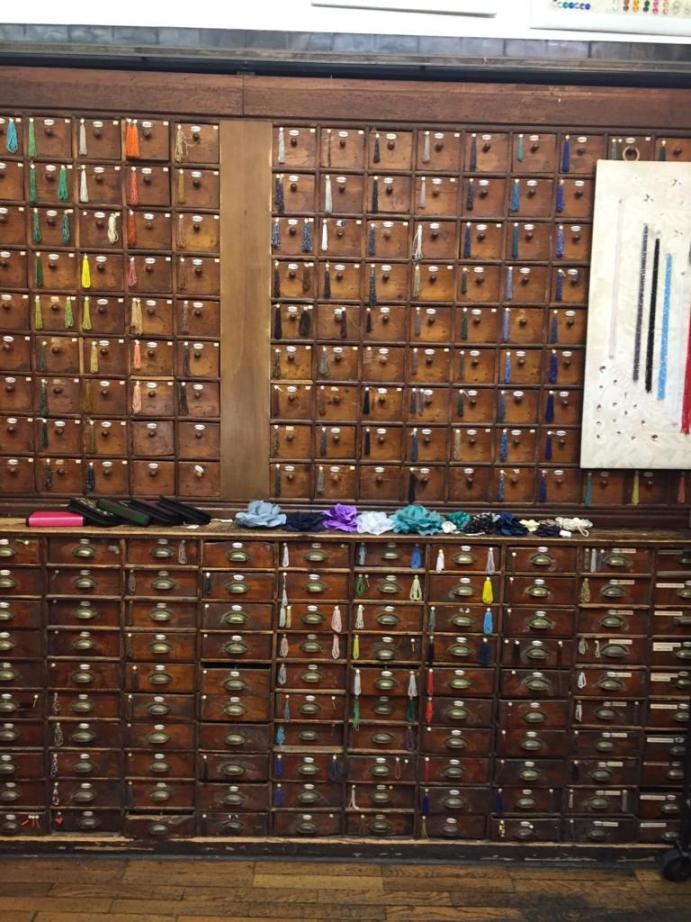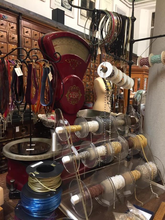 Le Passamanerie d’epoca si affiancano ai nastri attuali e ai rocchetti colorati facendo gara di beltà.