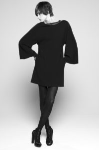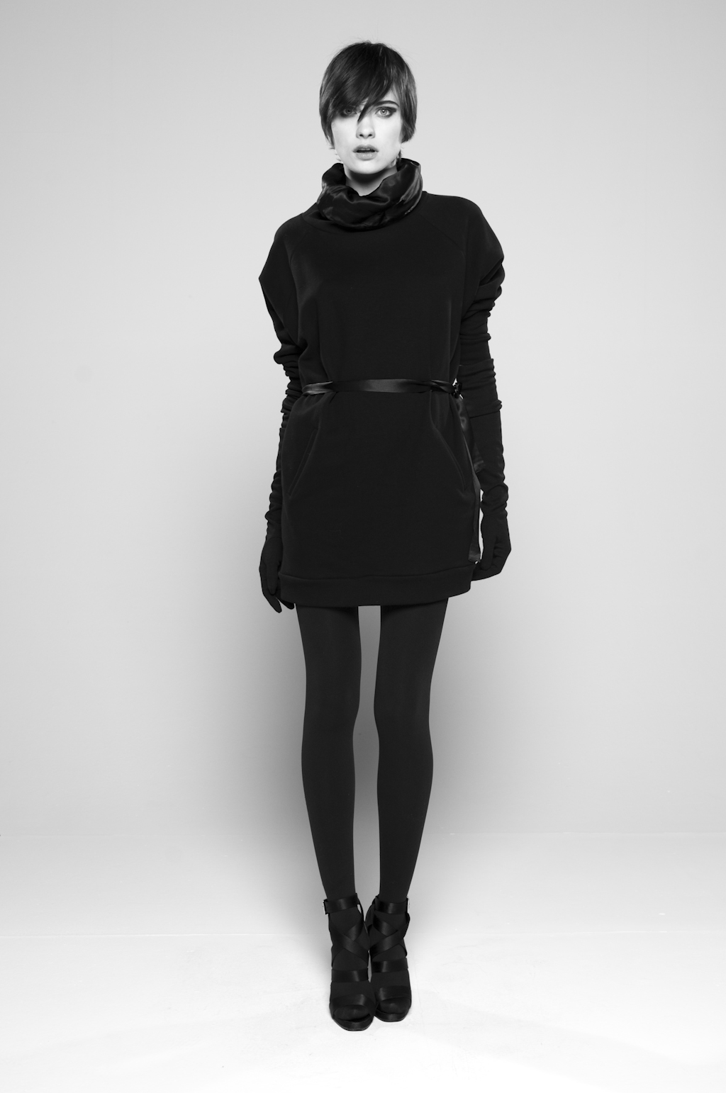 La collezione ha come punto di forza il ritorno della felpa, per ripercorrere i tempi gloriosi, gli anni “˜80, di Norma Kamali quando la felpa trattata couture era un dato consolidato.