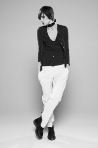 Stile molto pulito, dalle belle linee over e con forme tondeggianti sopra, supportate da pantaloni non rigorosamente stretti ma più morbidi, che danno l’ idea di una donna molto femminile pur essendo quasi androgina.