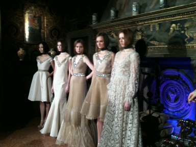 Tra un camino e un ritratto, un’armatura e un candelabro, eccoli. Preziosi, squisiti, eleganti. Emozionanti, verrebbe da dire. Lontani da tanta mancanza di buon gusto che vediamo ancora in giro. Fatti per essere indossati, ma anche un po’ per suscitare sogni e desiderio di femminilità autentica. Ricercatezza nei particolari couture, nei tagli, nelle forme, nella scelta dei tessuti. Una donna moderna che non disdegna il suo essere pienamente donna -a volte sensuale, a volte rigorosa- e che vive consapevolmente una contemporaneità dicotomica divisa tra ruoli e impegni diversi.