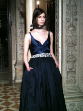Così si è presentata agli sguardi desiderosi di addetti ai lavori -e non- la nuova collezione di Luisa Beccaria per la prossima stagione autunno-inverno 2014/2015. Il Museo Bagatti Valsecchi -nato in seguito alla trasformazione (voluta dai fratelli Bagatti Valsecchi) della loro casa milanese in via del Gesù in un luogo adatto a raccogliere pezzi d’arte, mobili, arazzi rinascimentali raccolti con l’amore tipico dei collezionisti appassionati- ha ben fatto la sua parte. E le sinfonie di musica classica contemporanea dell’eclettico compositore Alberto Traversi hanno dato un’impronta di significativa rilevanza alla già ricca dimora. Ma poi…gli abiti, quegli abiti.