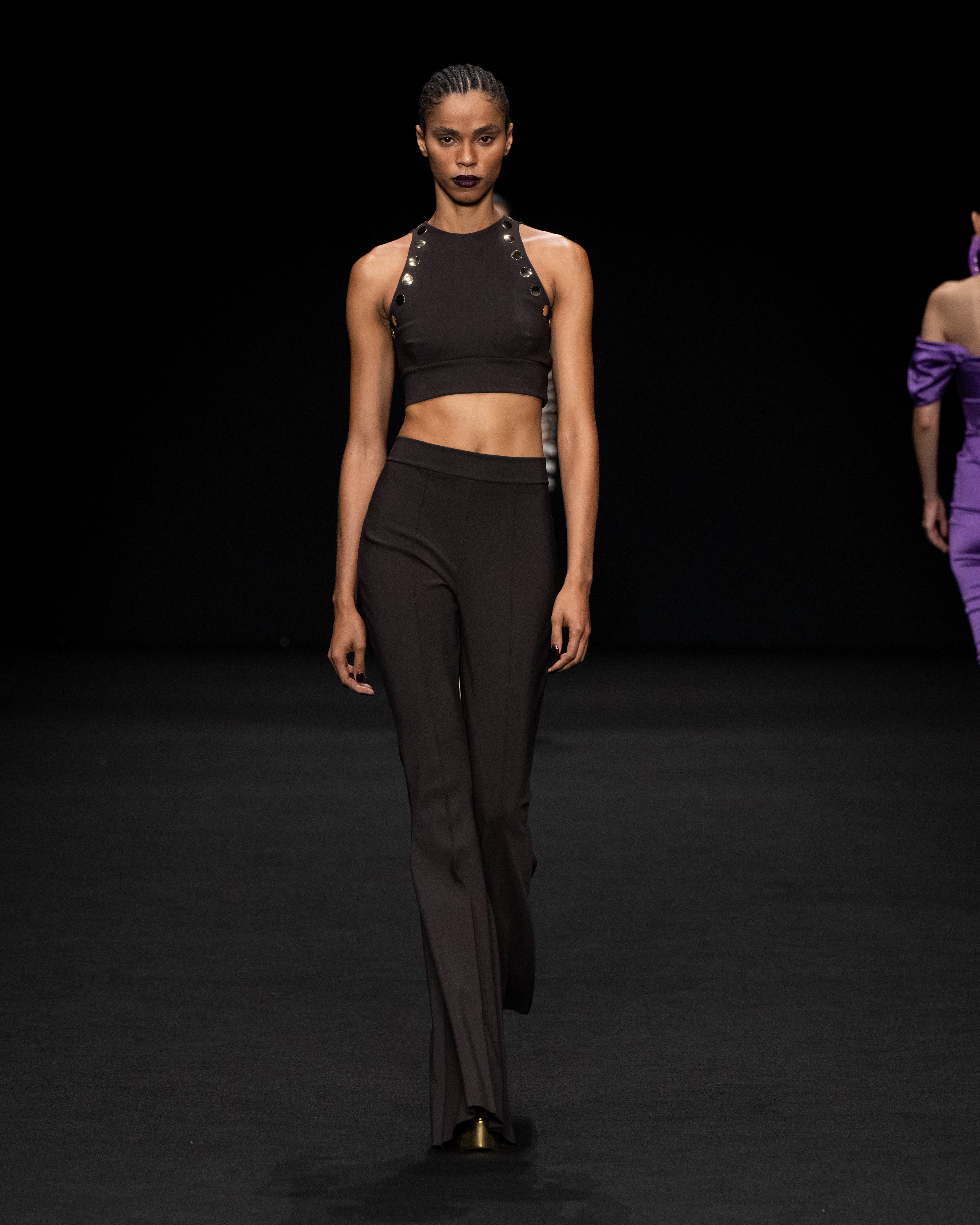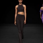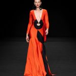 Nessuna concessione alle originalità del cattivo gusto, anche se giudichiamo negativamente il vezzo di disegnare, con tessuto di colore diverso, un cerchio nudo sull’addome di alcuni outfit, che lasciano in luce al centro l’ombelico. Ci è sembrato che questo escamotage spezzasse inutilmente la silhouette dell’abito invece di aggiungergli valore.