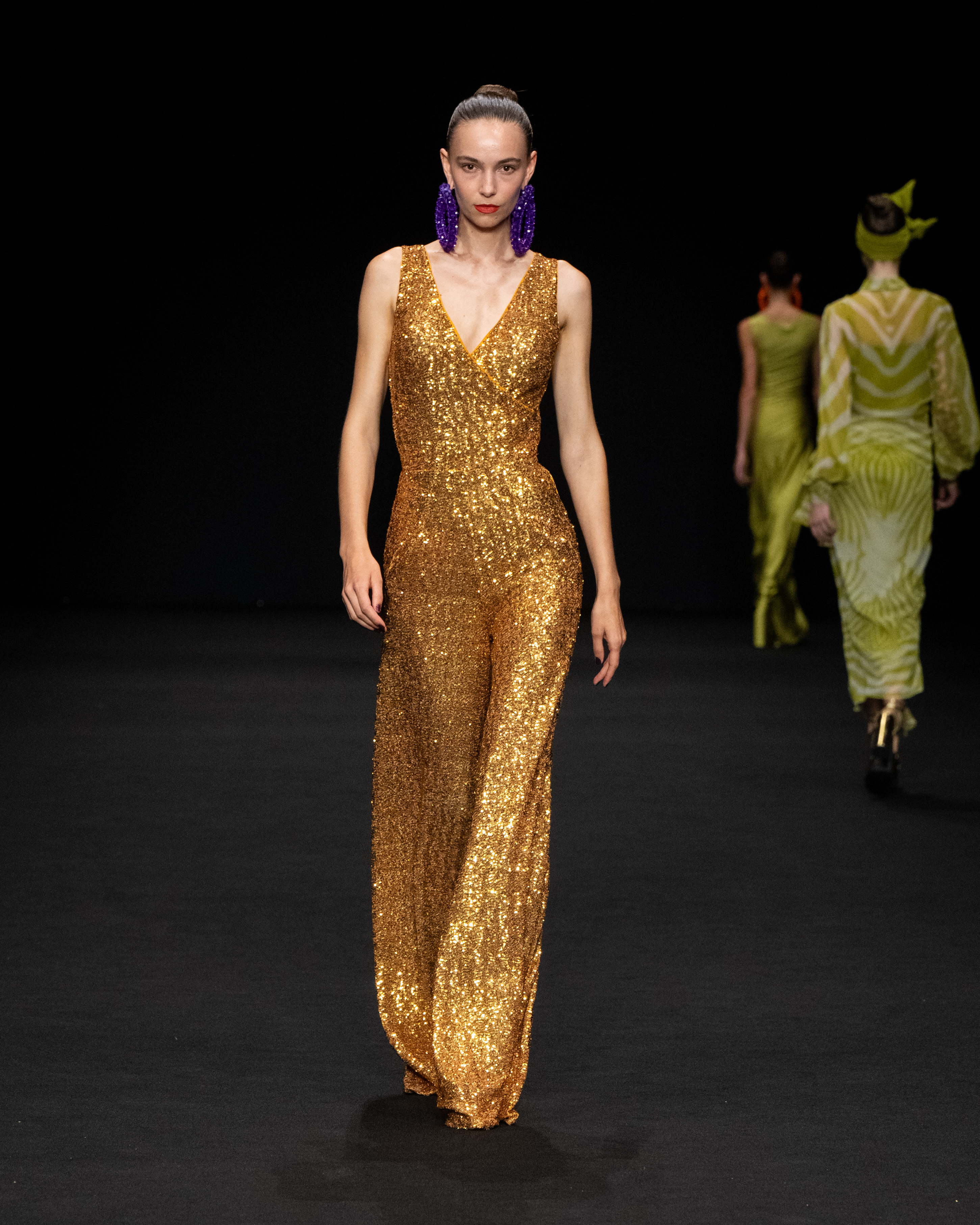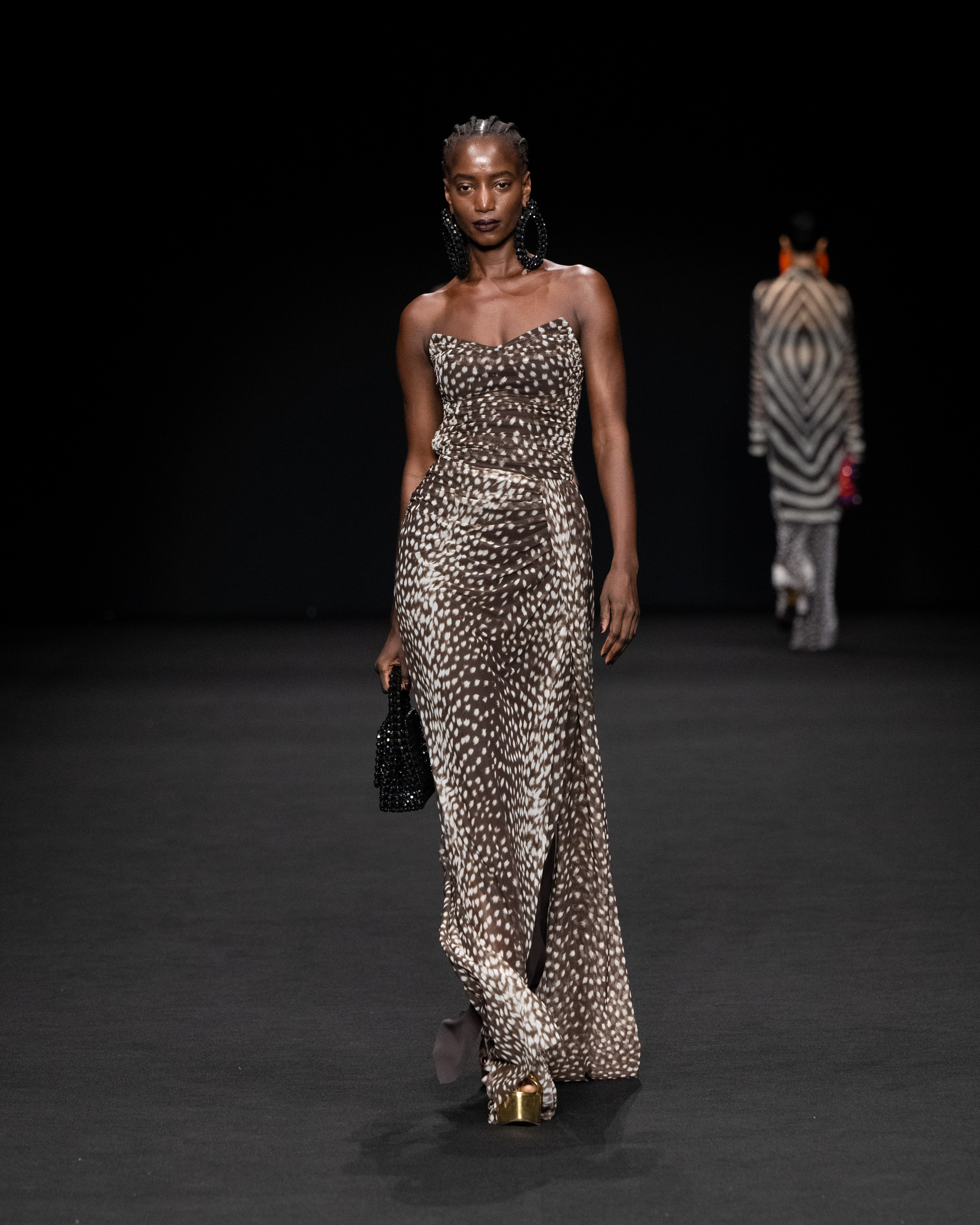 Orecchini a grandi cerchi rappresentano il filo conduttore unico che lega tra di loro tutti gli outfit, mentre mini-bag con maxi perline che ricreano le stampe colorate della collezione completano alcune uscite.