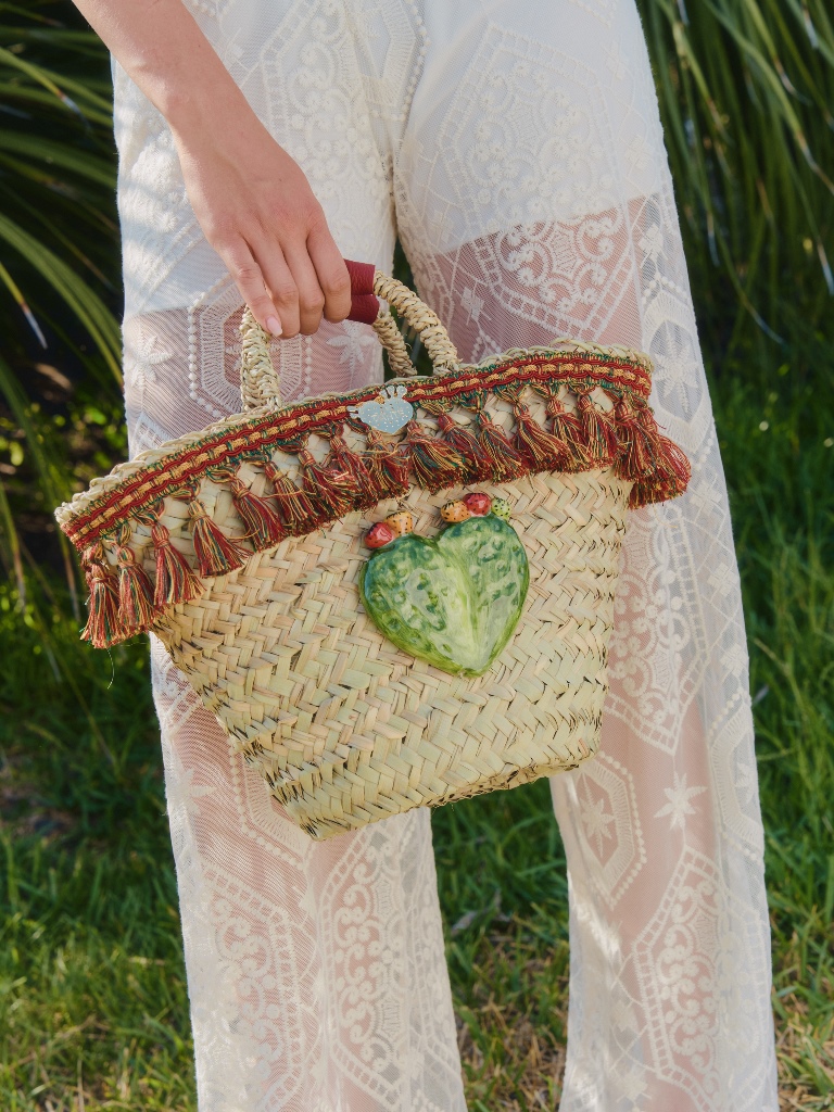 Fanciulla nuda & edit propone la leggenda delle Teste di Moro. Coffe maxi e mini in palma nana con nappe e con maniglie in pelle, sempre riciclata, sono questa volta impreziosite da elementi decorativi – le teste di moro – in ceramica di Calta