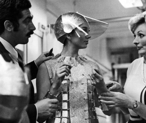 Quel decennio mitico, caratterizzato dai primi voli nello spazio e poi dallo sbarco sulla Luna, fu in effetti un’epoca in cui tutto sembrava possibile, un futuro ipertecnologico e intergalattico era dietro l’angolo nell’immaginario collettivo, e pareva inarrestabile la fiducia positivista nella realtà e nel metodo scientifico. Tutto questo contagiò anche il mondo della moda, sempre sensibilissimo alle istanze estetiche ed etiche di una società in evoluzione galoppante… a suon di rock e pop ed echi di cultura hippie in rapida diffusione.