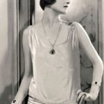 Deauville 1914, una giovane e intuitiva modista parigina asseconda l’onda del mutamento e apre la sua prima boutique confezionando cappelli e “moderni” abiti per signora. La ragazza si chiama Coco Chanel, un’anticonformista della couture femminile, tanto che, disertando definitivamente il corsetto (condanna storica d’inettitudine al corpo femminile) -per altro già messo al bando da Poiret e sostituito con i primordi del reggiseno-, concederà alla donna di liberarsi dall’altrui ausilio per doversi vestire. Audace e pratica accorcerà gli orli delle gonne e introdurrà l’utilizzo del jersey, tessuto povero ma confortevole, sino ad allora usato solo per gli indumenti delle classi popolari o per la biancheria intima. Le linee sono dritte, la vita bassa poggia sul secondo fianco, gli abiti o le gonne fanno pendant con giacche corte o a tre quarti portate aperte, e avvolgenti piccole cloche completano l’insieme.