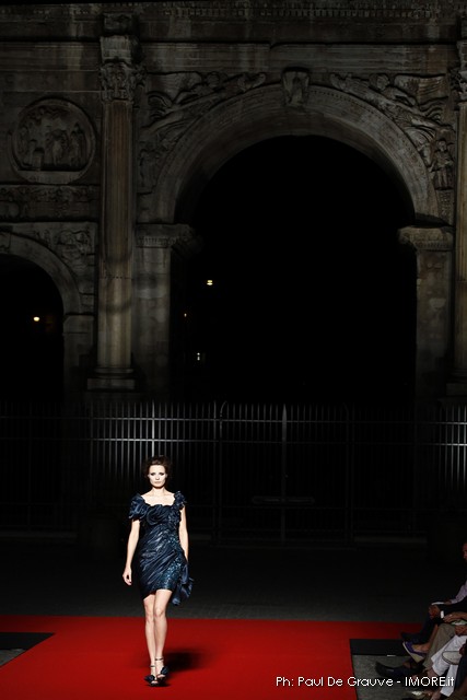 Finalmente una location degna della Roma “Caput Mundi”, per la sfilata del libanese Abed Mahfouz ambientata all’Arco di Costantino, in una calda serata romana. Mahfouz, non si cura delle polemiche in atto per la biasimata gestione di AltaRoma e non si rifugia in un hotel per presentare le sue numerose creazioni.