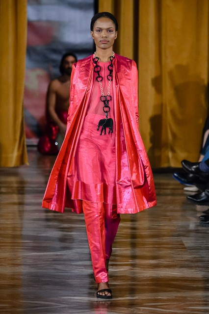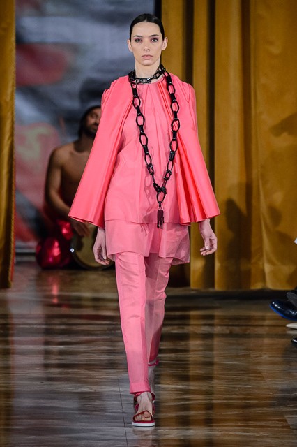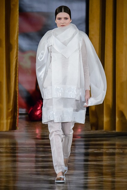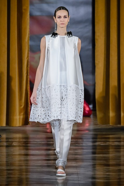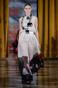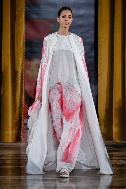 La silhouette di Nino Lettieri , riporta alla mente un miscuglio di odori speziati, corposi, ma al contempo lievi e delicati . La sua “elephants” presenta tutte le caratteristiche di una coerenza sartoriale ben architettata. Tre i colori prescelti dal couturier per la prossima stagione: il bianco puro, il nero e il rosa carico.