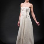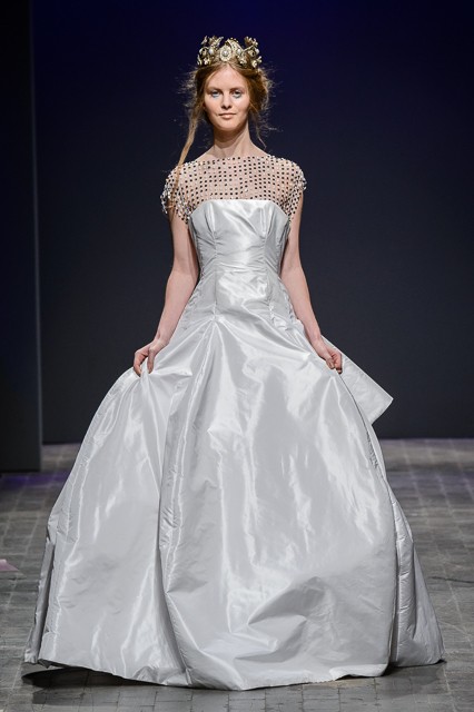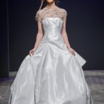 Una proposta delicata come la purezza di una giovane donna l’abito da sposa ideato dal couturier, un trionfo di balze decorate a tratti, da sottili ricami di piccoli elefanti.