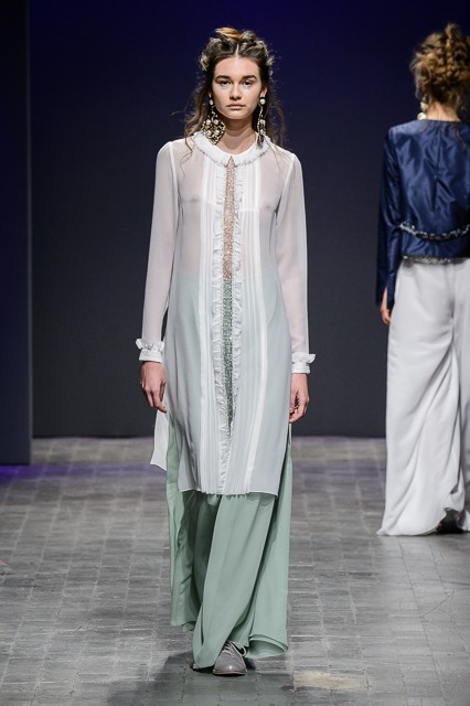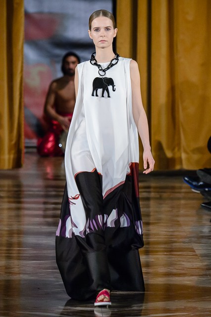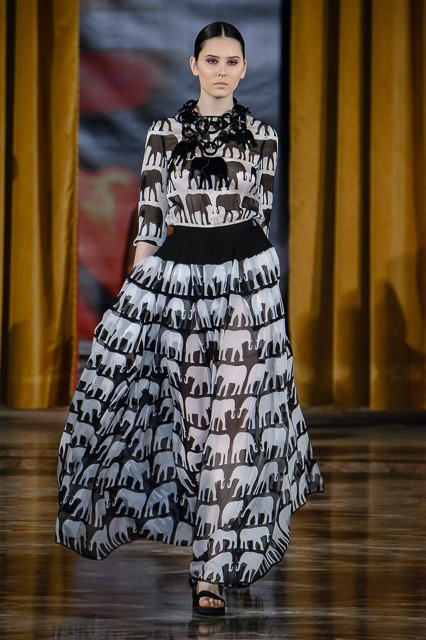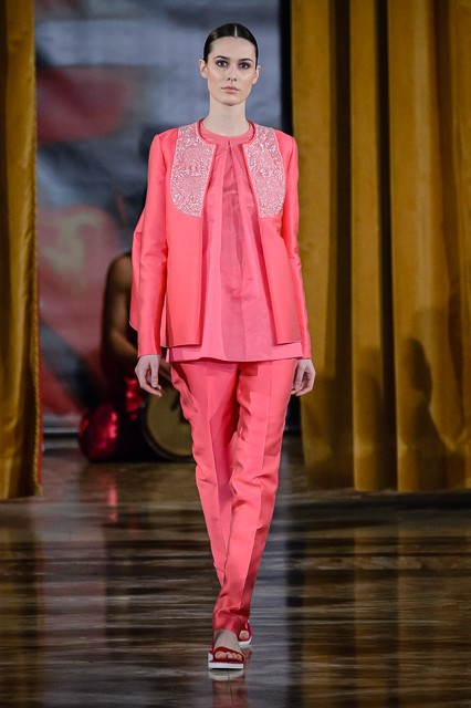 Il guardaroba, interamente pensato per una principessa di Nuova Delhi che si accinge ad intraprendere un viaggio nell’occidentale Montecarlo, presenta una perfetta sintesi tra cultura occidentale ed orientale. Mattina, pomeriggio, sera, e gran soirée i temi sviluppati, mise semplici e sontuose al contempo; robe manteau a matita con ampie pieghe sulle spalle, impalpabili kaftani in georgette di seta, eleganti abitini a trapezio con finiture in pizzo macramè, abiti lunghi tempestati di elefanti e pantaloni alla caviglia in seta mikado gli elementi fondamentali della collezione.