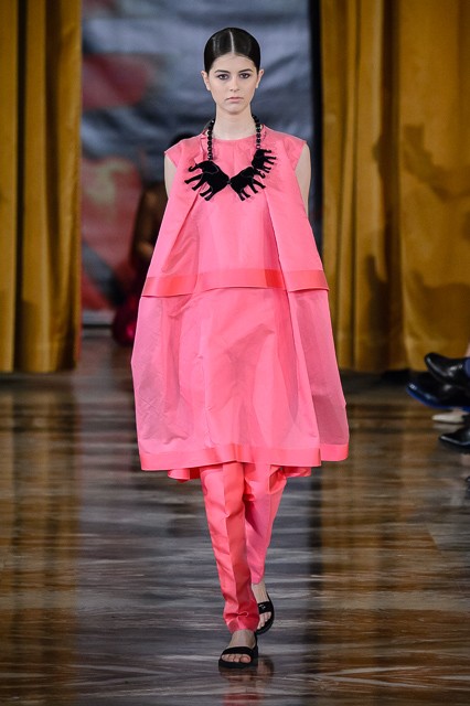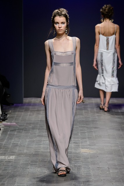 E così la collezione di Luigi Borbone mi fa pensare ad un’arte tanto semplice quanto sofisticata, se ben sviluppata: l’arte pasticcera. Mi viene in mente un’assonanza con una superba torta di panna montata e marzapane e infatti … la sua proposta p/e 2016 è una palette opalescente dalle tinte tenui e delicate, tonalità di rosa cipria dissolte nei verde menta stemperati a loro volta nei celeste polvere e nei delicati toni del grigio chiaro.