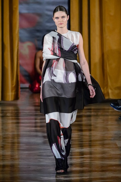 Talvolta, ma forse anche più spesso, le cose che appartengono all’arte, pur se in spazi autonomi, pur se su piani differenti, pur se in ambiti lontani, si conciliano stupendamente tra loro … e così una collezione di haute couture può ben essere in sintonia con qualcos’altro, una nota musicale, per esempio, un quadro di un pittore noto o meno; una galleria d’arte, o un museo, o un vernissage, o una rappresentazione teatrale.