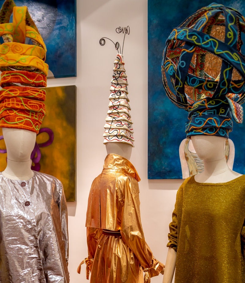 Una serata romana di inizio primavera … quelle in cui il bagliore delle lucine dei negozi si confonde con la luce naturale di una giornata che volge al tramonto… in cui l’aria profuma di mutamento e promesse di novità e i volti dei passanti trasudano speranza e desideri di levità. 27 marzo 2019 ore 18.00, Via del Babbuino 161, boutique Malìparmi, Atmosfera gaudiosa ed esilaranti proposte hanno aperto il sipario al consueto appuntamento stagionale per la presentazione della collezione P/E, quest’anno con una novità: l’esposizione di installazioni in tessuto, ricami, filo, ferro e dipinti aventi ad oggetto teste (e menti) femminili.