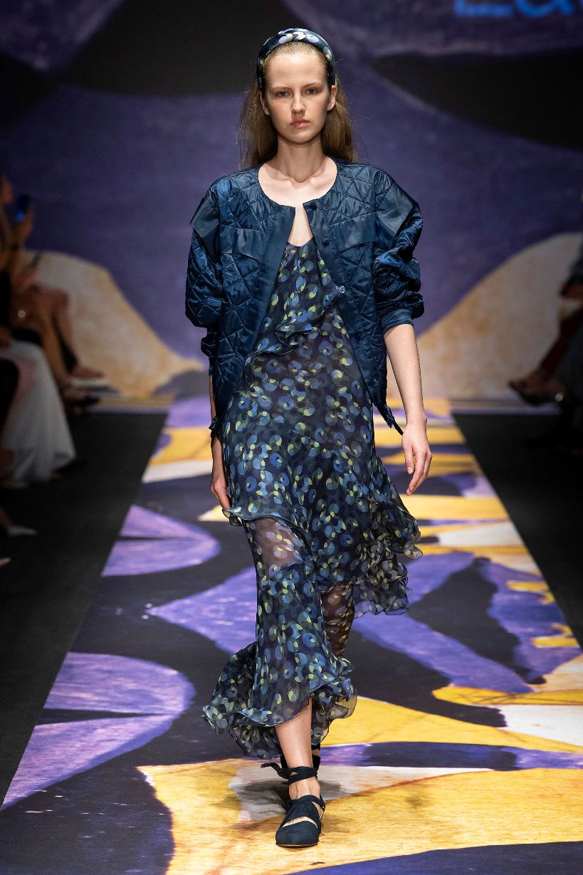 È ancora una volta la pittura Futurista di Giacomo Balla la fonte di ispirazione della collezione Laura Biagiotti P/E 2019. Non desta meraviglia. Attraverso la Fondazione Biagiotti Cigna la famiglia possiede ben 250 opere di Balla: dipinti, abiti, disegni e oggetti che sono contesi dai musei di mezzo mondo. Inoltre il Futurismo ha detto molto sull’abbigliamento, dimostrandosi un movimento di avanguardia rispetto al futuro della moda che oggi leggiamo a chiare lettere.