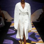 Ecco che troviamo nella collezione P/E di Lavinia Biagiotti Cigna una accentuazione del tema degli accessori con il nuovo progetto “See now wear now”, un’evoluzione del “See now buy now”, secondo la griffe. All’interno del Piccolo Teatro, dove si è svolto lo show, era allestito un corner dove era possibile acquistare alcuni accessori visti in sfilata: cerchietti futuristici vero must della stagione presenti in tutte le uscite, sciarpe, pullover, le T-shirt e gli occhiali biofuturistici (in materiale bio), oltre all’iconica borsa a secchiello.
