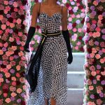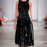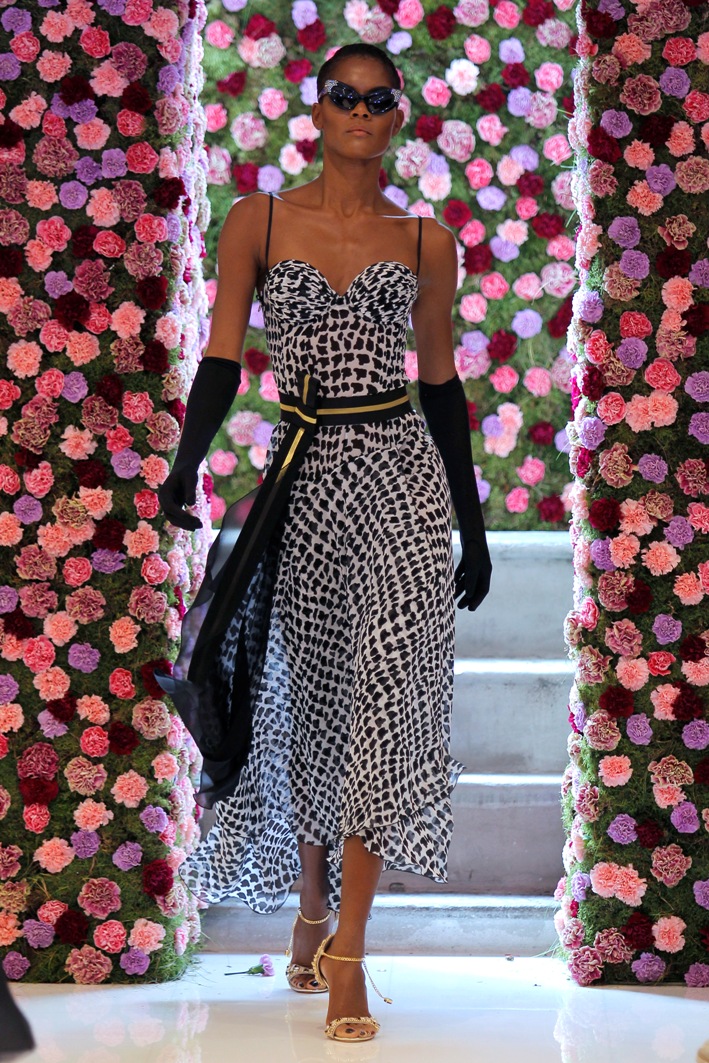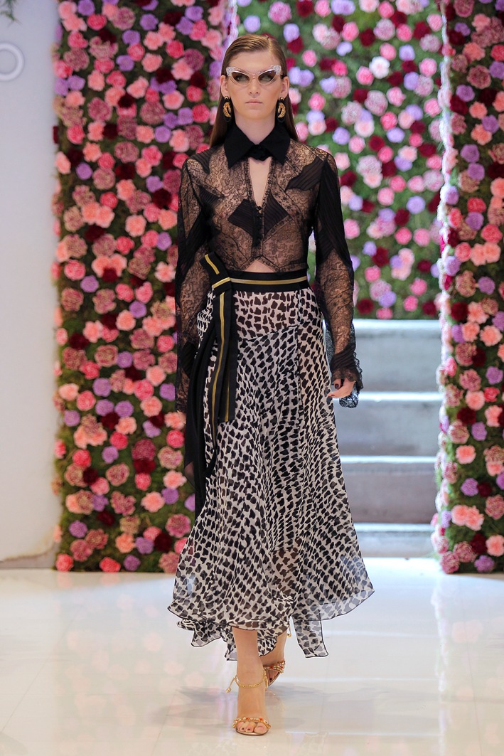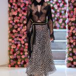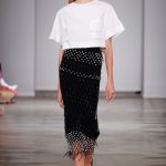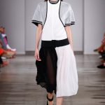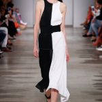 Generosa la proposta del bianco e nero, che, oltre a dipingere geometrie d’autore, generando talvolta vere e proprie scacchiere sugli abiti, seziona in due alcune delle silhouette proposte, dividendole di netto tra purezza e mistero, tra candore e vischiosità, tra trasparenza ed ermeticità, tra luce ed ombra. Ma poi di fatto, come nel simbolo del Tao, la dove non c’è separazione, la dove il bianco compenetra il nero, in un gioco di complementarietà preziosa ed eterna, le tiene inesorabilmente unite. Il bianco rappresenta l’assoluta libertà, la pagina pulita, un nuovo inizio, il nero -che nell’antica Cina è descritto come “il lato in ombra della collina”- è l’altra faccia della medaglia, quindi i due sono legati a doppio nodo.