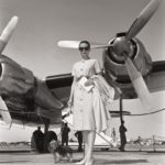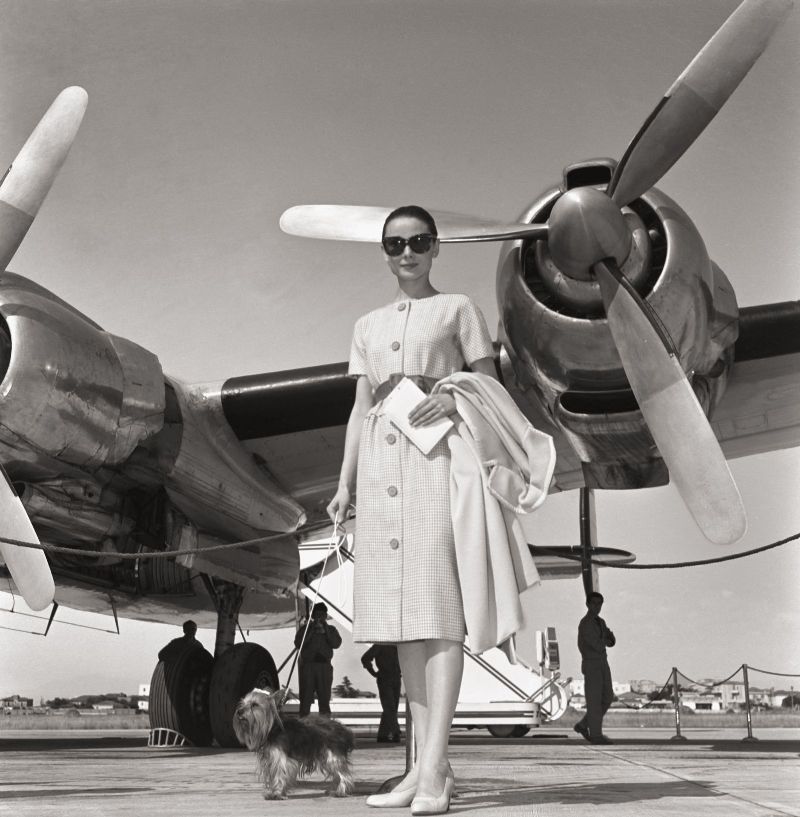 16 giugno 1958. Un'elegantissima Audrey in partenza dall'aeroporto di Ciampino dopo un incontro con i giornalisti.© Archivio Storico Luce -proprietà Cinecittà Luce