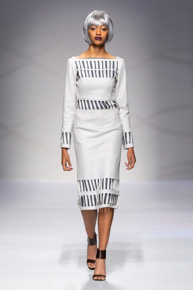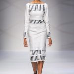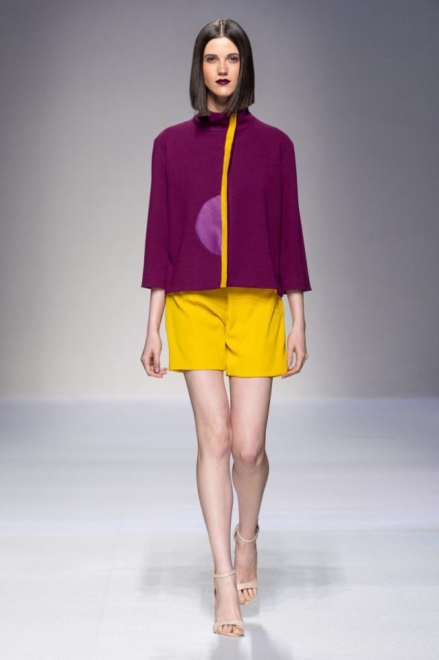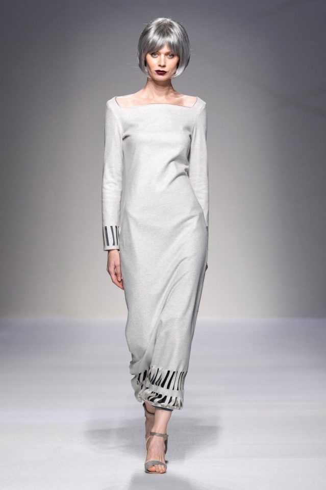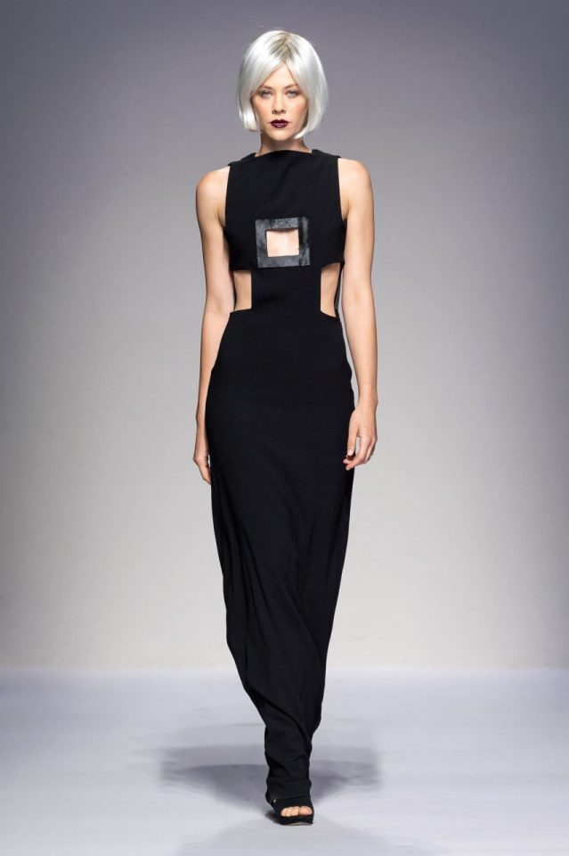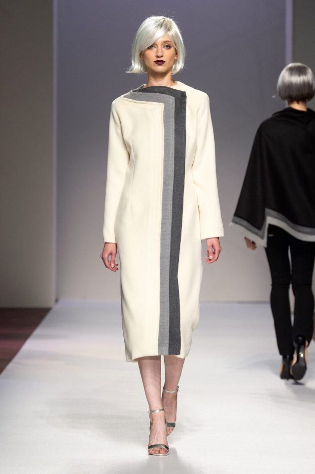 Si ispira, la proposta di Sabrina Persechino, alle opere del razionalismo e alle pitture del secondo ventennio del novecento, magistralmente trasferite su tessuti e modelli. Geometrie e tagli sapientemente misurati e in perfetto equilibrio tra loro segnano la silhouette delle mannequin dando vita ad un insieme sobrio e rigoroso.