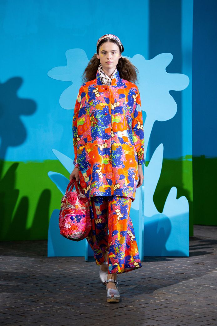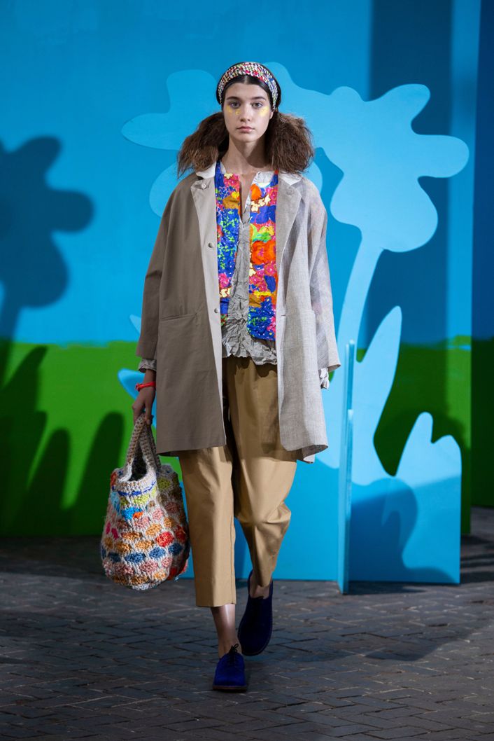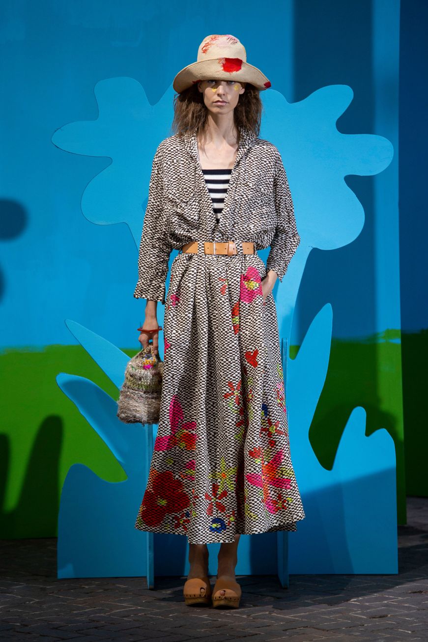Delineano la collezione silhouette sottili dalla linea ad “A”, pantaloni morbidi combinati con bluse dalle maniche a tre quarti e tasche applicate; abiti con gonne dalle linee pulite, talvolta ritmate da balze, arricciature o plissé, dalla schiena scoperta e dal busto castigato. Leggeri grembiuli in sangallo con gonna asimmetrica e chemisier in pizzo con maniche dai volumi ampli; colli tondi o americani definiscono poi la cifra stilistica della casa di moda, conferendo all’intera collezione una eleganza sofisticata e leggermente retrò. La purezza della luce solare e il suo dialogo con la natura ispirano la palette cromatica fatta di numerose sfumature di bianco: dal bianco puro al bianco panna, dal crema all’ecrù. Accanto a tanto candore spuntano poi, come fiori profumati su un tappeto erboso, tripudi di fiordaliso, di azzurro polvere, gradazioni di carta da zucchero, di blu e di rosa.