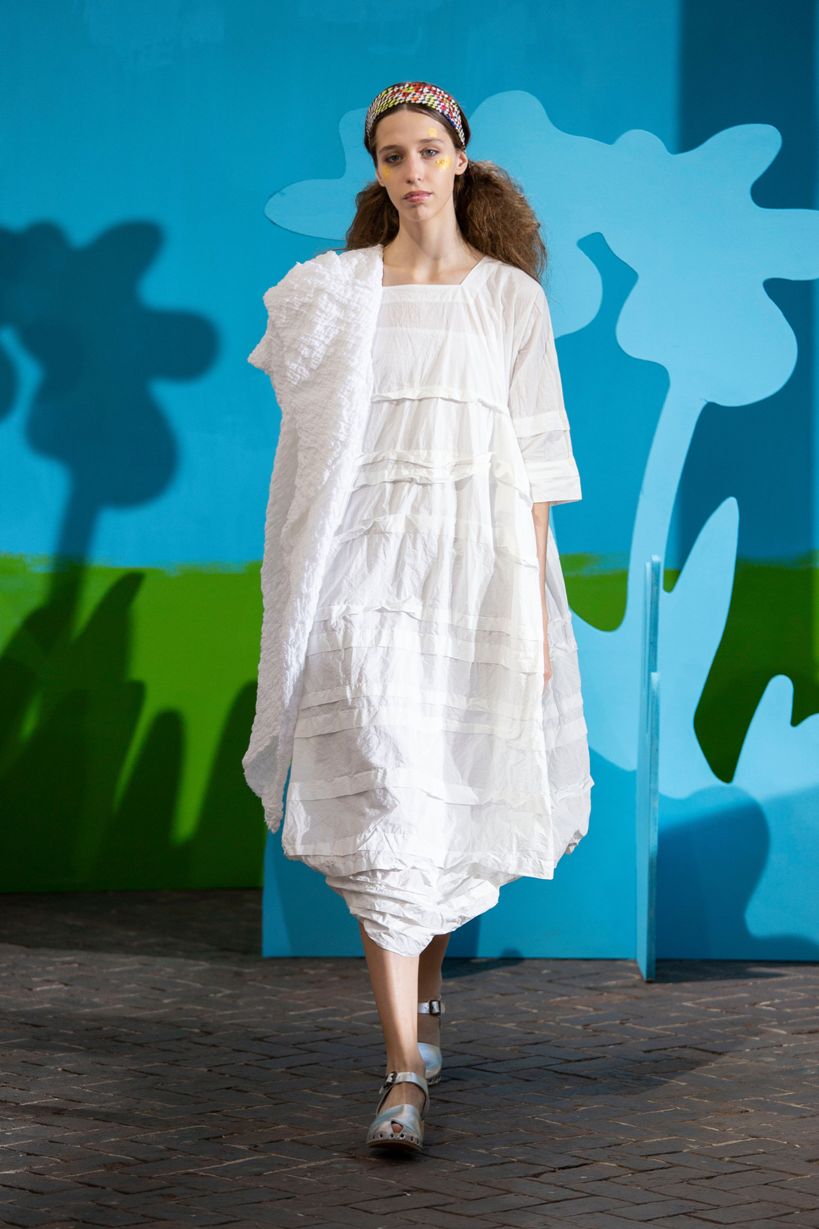 Un parco assolato, testimone solerte di giochi gioiosi e di corse in giardino scandite dal vento, dei pensieri incalzanti di una giocatrice di volano che sfida la quotidianità a una partita di eleganza, tra bianchi tessuti scottati dal sole e profumo di fresche note fiorite: questo il panorama emozionale creato da Luisa Beccaria come sfondo della collezione P/E 2020 presentata a Milano, durante la Settimana della Moda di settembre 2019.