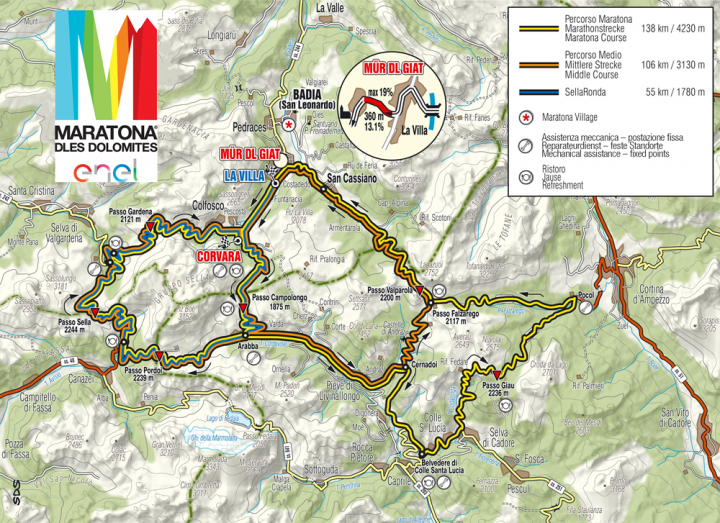Per la speciale edizione del 30° la Maratona, come sempre organizzata a puntino dall’entusiasta Michil Costa, ha avuto come tema “il viaggio”, un’esperienza multisensoriale a pedali nel cuore delle “montagne più belle del mondo”, con tre opzioni di percorso (55, 105, 138 km)… e sono stati quasi 10mila gli appassionati saliti in sella – dilettanti e professionisti (in primis il campionissimo Miguel Indurain) – tra cui un migliaio di donne (moltissimi gli stranieri partecipanti).