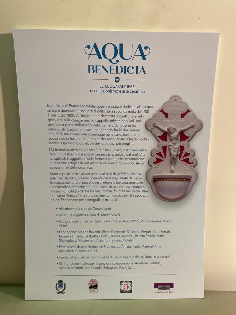 Una mostra sorprendente quella proposta dal sempre creativo e originale Museo del Bijou di Casalmaggiore, che ha suscitato molto interesse e vivo apprezzamento con “Aqua Benedicta” (https://www.museodelbijou.it/it/mostre/2023/mostre-temporanee/aqua-benedicta/). Protagoniste le acquasantiere domestiche, ovvero le vaschette contenenti acqua benedetta in cui i fedeli intingevano le dita per compiere il segno della croce, appese negli ambienti di casa all’ingresso e soprattutto accanto ai letti. Un rito un tempo molto diffuso che rimarcava il valore della benedizione e della preghiera, nonché la richiesta di protezione e glorificazione di quello spazio così intimo e privato che è il luogo in cui si vive con la propria famiglia. La loro presenza, pure molto decorativa, spesso era un’esortazione agli atti di devozione in ogni momento della giornata, ma specialmente mattina e sera quando ci si alzava da letto e quando ci si coricava.