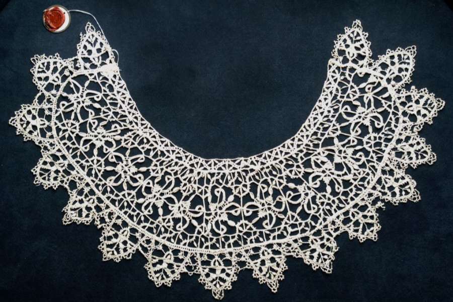 Il periodo che va dal XVI al XVII secolo segna la nascita della lavorazione del merletto, una tecnica che vide le veneziane e fiamminghe protagoniste assolute. I merletti bianchi, realizzati a mano con straordinaria maestria, furono utilizzati per bordure e accessori femminili e rappresentano un’eccellenza artigianale che ha attraversato le epoche. La mostra presenta una rara selezione di questi capolavori, evidenziando anche la creatività delle donne che si dedicavano a quest’arte. Nel XIX secolo, l’introduzione della produzione meccanizzata portò a una certa perdita di virtuosismo, ma il ricamo in filo bianco su tela batista e mussole continuò a essere un’espressione femminile, praticata anche a livello professionale. Quattro esemplari particolarmente raffinati di questi ricami, che decorano fazzoletti femminili, sono tra i pezzi di punta della rassegna torinese, testimoniando l’alto livello raggiunto da tale attività.