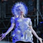 Per citare qualche altro stilista che ne ha assecondato la visionarietà, ecco Comme des Garçons, Jeremy Scott, Iris Van Herpen, Bernhard Willhelm, Hussein Chalayan, M/M Paris, che di questa sirenetta glaciale hanno fatto un’icona tratta da un quadro surrealista. Si tratta spesso di abiti scabrosi, al limite dell’imbarazzante, se non del gusto per l’orrido, ma che addosso a questa ormai mitologica figura della terra dei geyser appaiono coerenti col suo percorso esistenziale, la sua intelligenza emotiva, i suoi ideali e obiettivi.