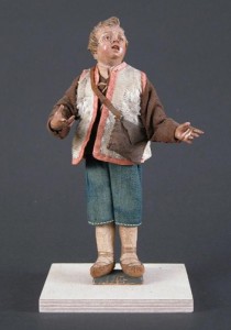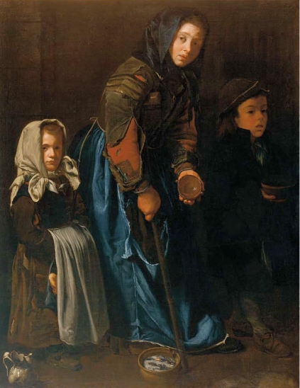 All’odierna mostra del Centraal Museum in Olanda non poteva mancare qualche dipinto del Maestro dei Blue Jeans, a cui si aggiungono altre “chicche” per gli appassionati d’arte, come le statue settecentesche che raffigurano un uomo ed un ragazzo con i pantaloni blu, provenienti dalla collezione Catharijneconvent di Utrecht. Riguardo al «Maestro della tela jeans», possiamo aggiungere qualche particolare in più. Si tratta di un pittore seguace di Caravaggio, interessato alla rappresentazione della realtà e, nella fattispecie, dell’umanità più misera e negletta, osservata sempre con occhio rispettoso della dignità di ciascuno. Questa sensibilità si coglie specialmente nei ritratti dei fanciulli costretti ad elemosinare, vestiti di cenci, spesso dolenti, stanchi, affetti da menomazioni nel corpo e sicuramente nell’animo. I suoi dipinti, per certi aspetti, sono stati accostati talvolta a quelli di sommi artisti come lo spagnolo Diego Velazquez o il francese Georges de La Tour. Nelle sue tele appare costantemente il medesimo tessuto color indaco, cucito con filo bianco, i cui strappi rivelano una tessitura spessa, sia sulle giacche dei contadini che in quelle sbrindellate dei giovani mendicanti, nonché sulle gonne lacere delle donne.
