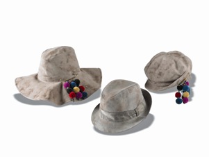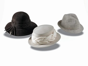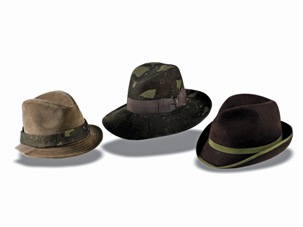 Molto diverse le fogge e i materiali: dal classico Borsalino, in feltro con la tesa piccola, alle coppole, le bombette e i lussuosi broccati scozzesi.