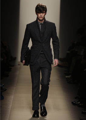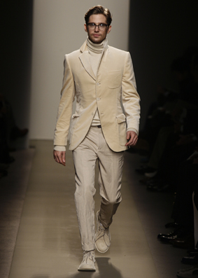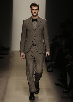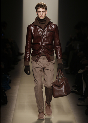 Tomas Maier sceglie come capo centrale il cardigan dalle linee morbide e dalla delicata vestibilità casalinga: per stare con gli amici, non certo per affrontare le difficili congiunture economico finanziarie che la globalizzazione ci ha costruito intorno. Stessa funzione sembra avere la maglieria: resistente, leggera e superlativamente morbida: caratterizza fortemente la silhouette della stagione.