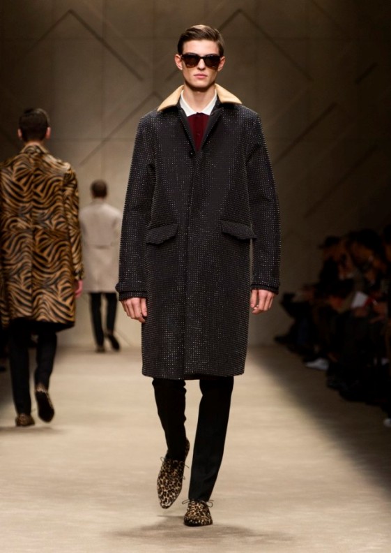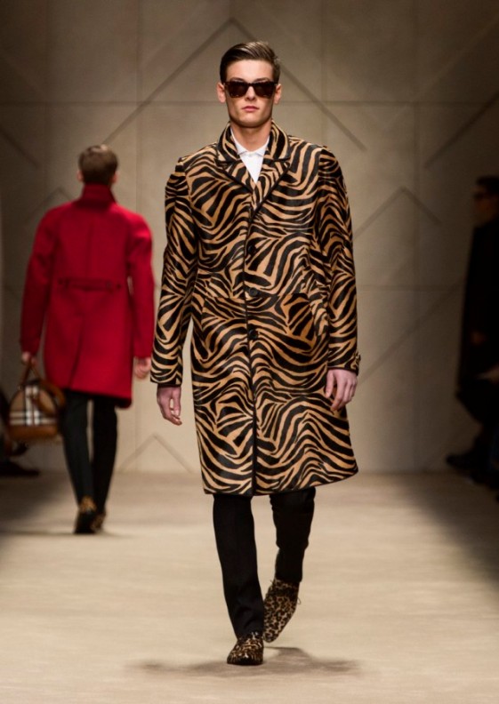 Si respira buon gusto e sobrietà alla sfilata uomo di Burberry Prorsum; Christopher Bailey non si smentisce e porta in passerella per l’autunno-inverno 2013-14 una collezione estremamente british reinterpretando i capi cult, i colori storici e i temi intramontabili del marchio con tocchi fashion di colore e stampe animalier.