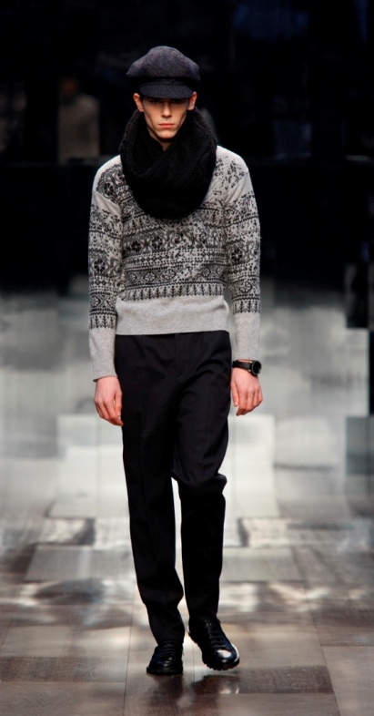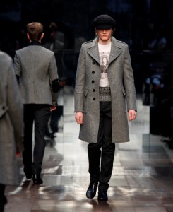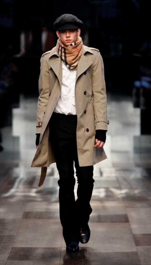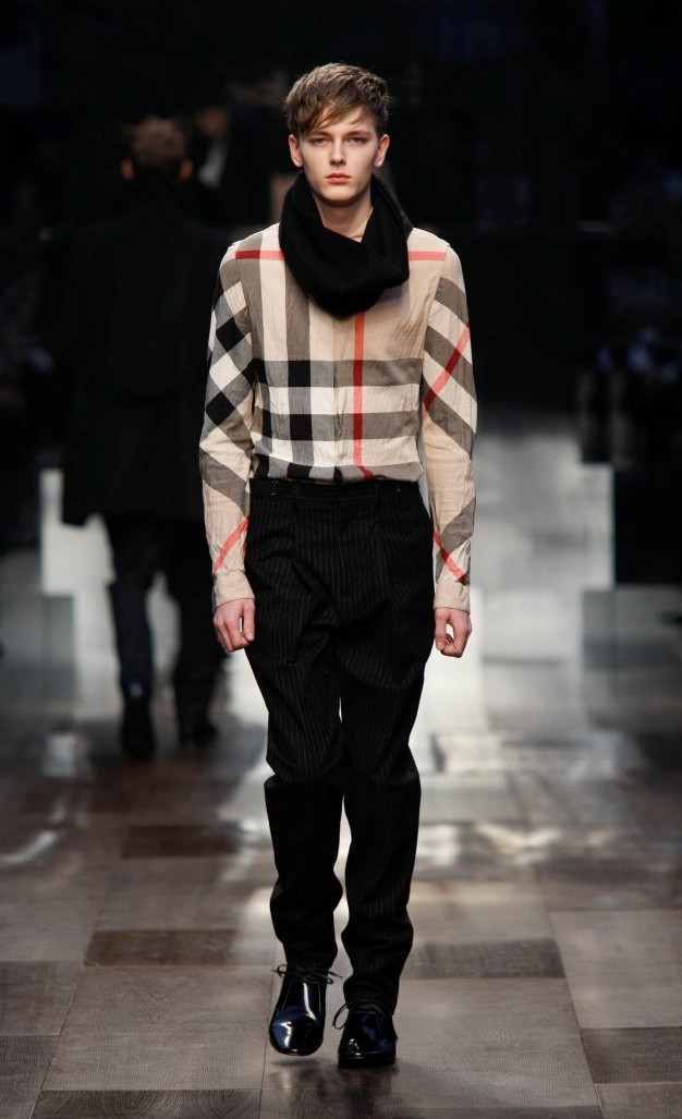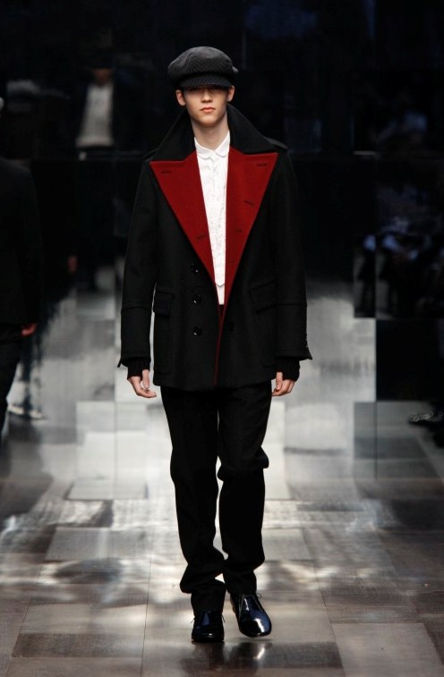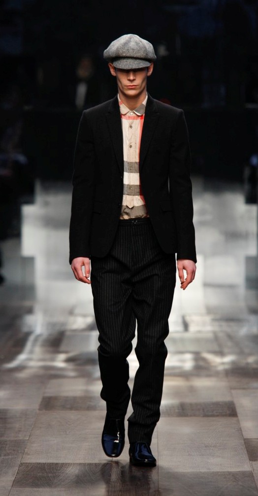 Lo stile della collezione è tipicamente Burberry. Ampiamente segnato dal check nella nuova versione, nero antracite e bianco, creata da Christopher Bailey per la collezione maschile Burberry London primavera 2009 ed ora reinterpretato per la linea giovane Burberry Prorsum. A volte lo stilista con i quadri costruisce una calda sciarpa che diventa un elemento irrinunciabile (un must) dell’abbigliamento invernale, da portare su camicia bianca, completo scuro, oppure sotto il classico trench. Altre volte il disegno appartiene ad una camicia che accompagna un pantalone o completo scuro, il tutto completato da un berretto in stoffa che fa molto ottocento di Oliver Twist. Ecco qui un altro filo conduttore della collezione: il berretto, anche esso variamente portato, solo, con un completo, su un cappotto, su un trench. E poi anche i colli ad anello utilizzati come calde e voluminose sciarpe che vanno ripetendosi per mantenere l’armonia della collezione.