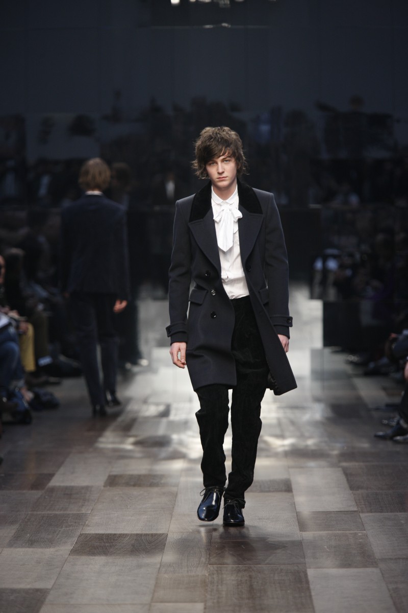 Nell’era dell’informatica Christopher Bailey torna a rappresentare una grigia Inghilterra di inizio secolo -quella ritratta dal fotografo Bill Brandt, per ambientare i tanti elementi di eleganza british che caratterizzano le sue creazioni. A dare il clima sono i colori fumosi: i grigi (dal più chiaro ma comunque da cielo in tempesta, allo scuro antracite), il cammello, il prugna, i blu (notte e inchiostro), ecc.