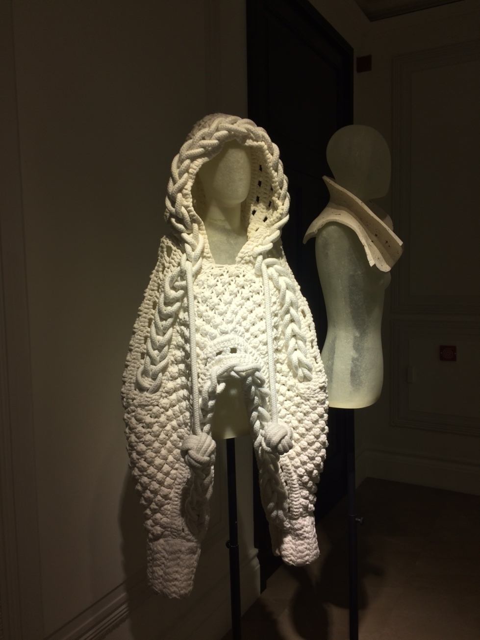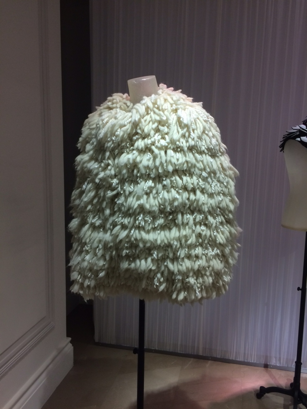 Manichini esili e svettanti mostrano la potenza e la fierezza di uno stile creato dalla contaminazione di svariati elementi architettonici e donano un senso di perfetta quiete (facile l’analogia con “The Capes Reimagined” di Burberry offerte al pubblico nei giorni del Fuorisalone nel maestoso negozio di Via Montenapoleone; 30, tutte meravigliosamente bianche e ispirate allo scultore britannico Henry Moore, tutte ornate di rari e raffinati dettagli che ne fanno vere opere d’arte).