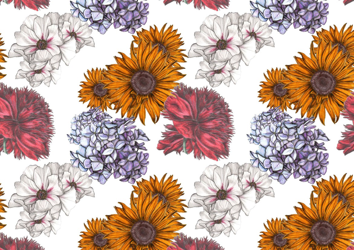 Studiando in accademia ho scoperto cosa significhi veramente lavorare ad una collezione di abbigliamento dall’inizio alla fine. A partire dall’ispirazione iniziale alla scelta di colori, tessuti, lavorazioni, stampe, fino al disegno ed alla composizione degli outfit finali. Questo processo mi ha permesso di scoprire quali fossero le parti che mi piacevano di più. Mi sono così appassionata alle stampe ed al disegno tessile in generale. Ho sempre amato disegnare a mano, soprattutto fiori, e le persone che mi stanno più vicine mi hanno spesso detto che sarebbe stato meraviglioso vederli ripetuti su un vestito, su una parete….. L’accademia mi ha fornito gli strumenti per realizzare ciò: le mie creazioni partono sempre da un mio disegno a mano che tramite programmi per computer come Photoshop oppure Illustrator trasformo in motivi che si ripetono all’infinito. Ma lavoro anche partendo da fotografie, creando collage oppure pattern (ossia motivi che ripetono all’infinito), che cerco su internet oppure che faccio io quando sono in giro. Perché l’ispirazione può venire da ogni cosa, che sia un fiore, un gioco di luci fra gli alberi oppure un motivo architettonico.